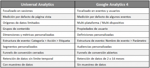 Principales diferencias entre Universal Analytics y GA4