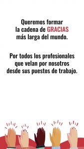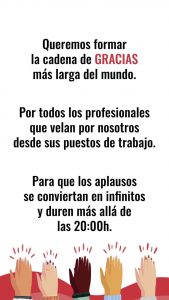 Además, para hacer que esto se convirtiera en una auténtica cadena, lanzamos en nuestros stories, la cadena de “Aplausos” más infinita del mundo. Con la ayuda de nuestros seguidores y con el fin de que los aplausos fueran más allá de las 8 de la tarde, conseguimos llegar a aquellos que por una cosa u otra no podían recibir estos aplausos.
