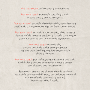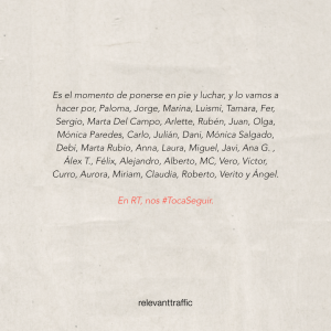 Como muchos han tenido que vivir por desgracia, en Relevant Traffic nos toca seguir. Y nos toca hacerlo más fuertes que nunca, todos unidos desde inicio a fin. Ha sido uno de los momentos más duros a nivel de compañía, pero nos tocaba ser honestos y sinceros. Por eso, y a modo de carta abierta al universo, lanzamos esta comunicación apoyada por un hashtag que ha empoderado todas nuestras iniciativas en estos momentos.